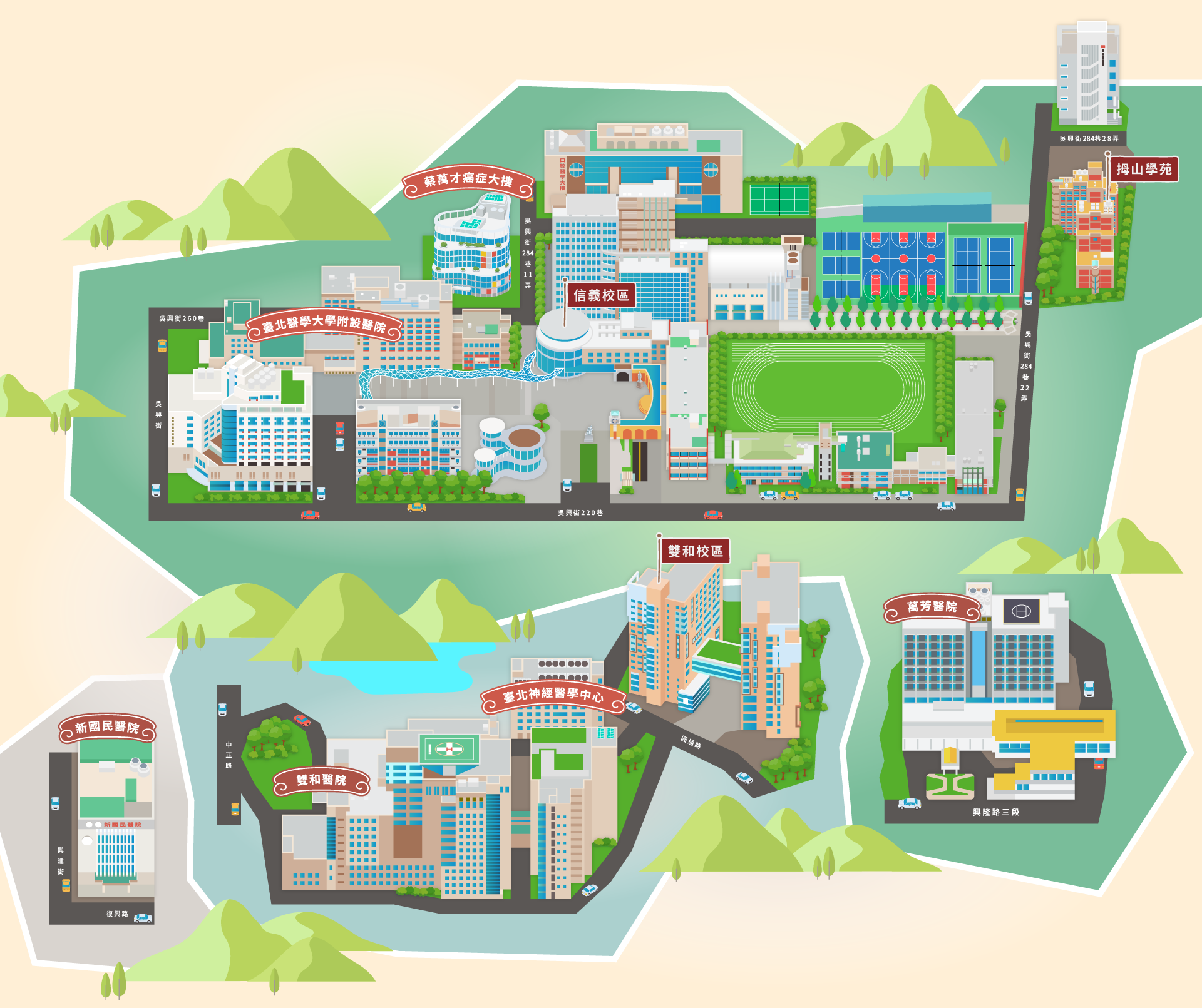 臺北醫學大學附設醫院,創立於1976年。奠定北醫體系臨床服務與教學研究雙向交流的基礎,並將以成為國際一流的大學醫院為目標。